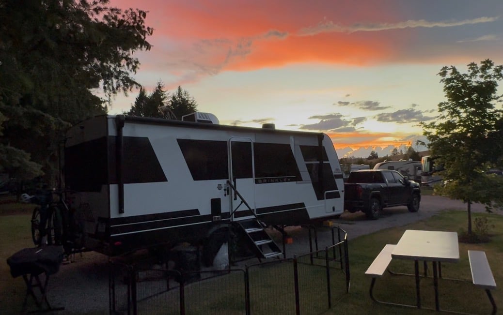 We’re Lindsey and Dan, two RV newbies who finally stopped saying “someday” and decided to chase our dream of life on the road with our doodles. Our journey began in an Airstream, and now we call a Brinkley Model I 235 home. For us, life in tow means carrying our dogs, our adventures, and the freedom to live fully wherever the road leads.
